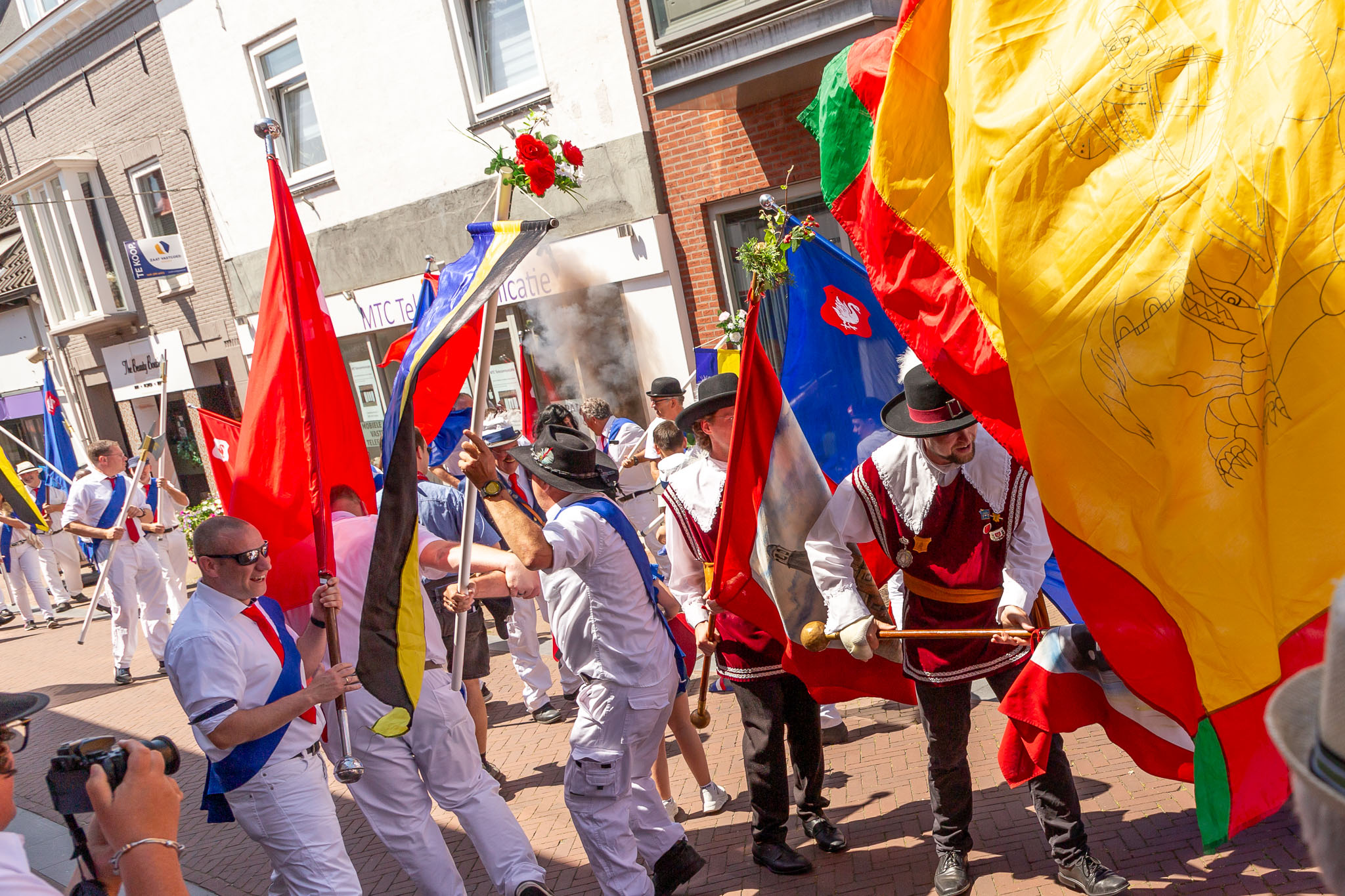 - hulde brengen door middel van vendelslag aan koningsparen, kerkelijke en wereldlijke autoriteiten, voor diegene waar het van toepassing is en voor “God, Koning en Vaderland”.